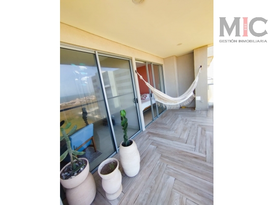 Se arrienda hermoso apartaestudio, con vista al mar, cuenta con 1 alcoba con baño interno y walking closet, 1 baño social, sala-comedor, cocina integral, área de labores, balcón y 1 parqueadero cubierto. El apto es fresco por su posición ubicada del lado sombra.